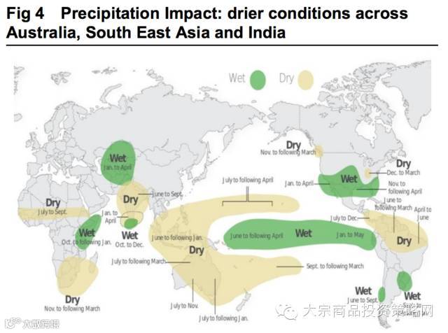 对于厄尔尼诺将如何影响全世界的企业,投行麦格理在近期制作的上图中做了预测。麦格理在一份报告中称,北美、澳洲及新西兰的企业最有可能受到影响,其次为亚洲企业。
