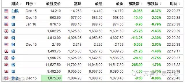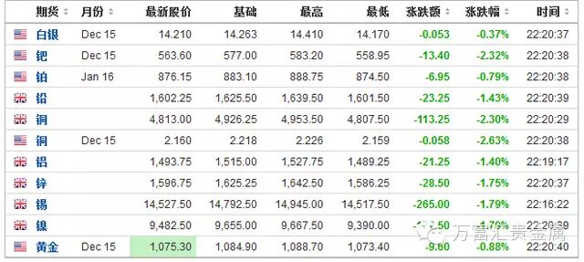 黄金一度跌逾10美元,至1073美元/盎司,创2010年以来新低。晚间10点30分左右,黄金期货快速反弹,较早些时候创下的的五年新低反弹约10美元,日内跌幅收窄至0.2%。