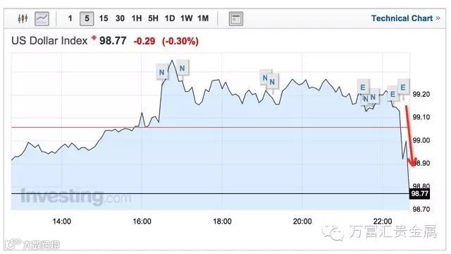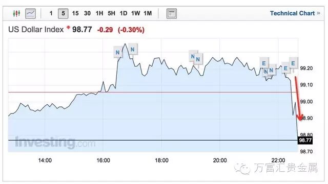 美元指数短线下挫,晚间10点45分左右,欧元兑美元拉升约60点,至1.0792。
