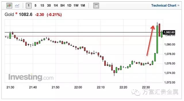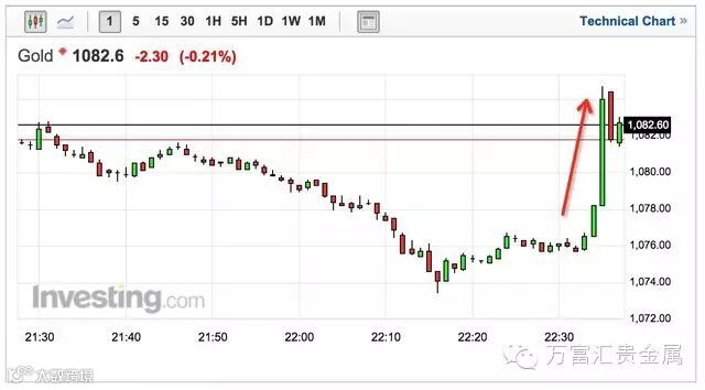 彭博数据显示,COMEX 12月黄金期货北京时间22:35一分钟内成交达5185手,大量买单推动金价一分钟内跳涨6美元。