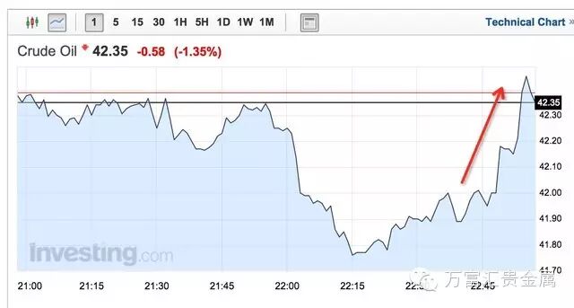 美油跳水后反弹,WTI油价跌幅收窄至1.3%,重返42美元关口上方,稍早一度跌2.9%。
