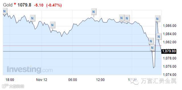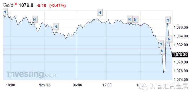 不过此后黄金期货再次转跌,现跌0.3%至每盎司1081.6美元,较稍早高点回落约7美元。
