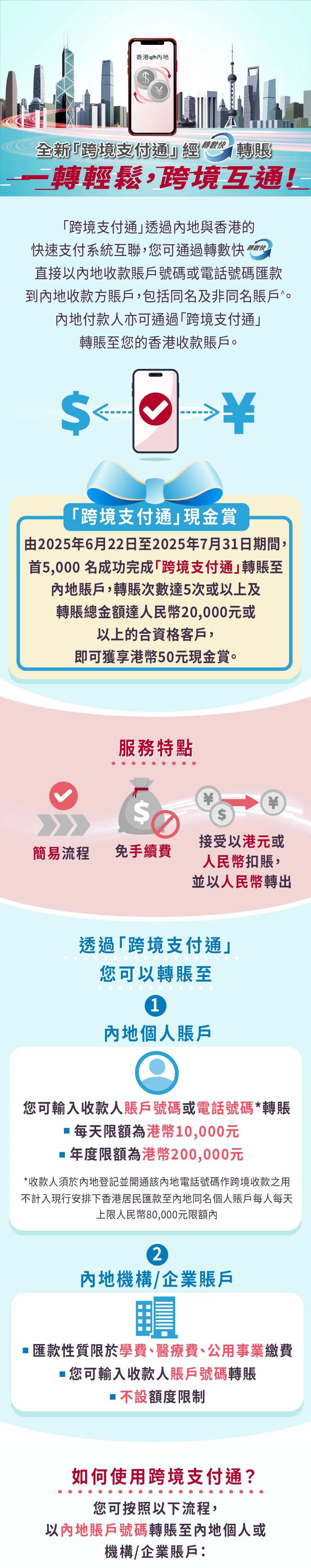 4. 每名「跨境支付通」現金賞合資格得獎客戶最多可獲現金賞一次及最多獲享港幣50元。