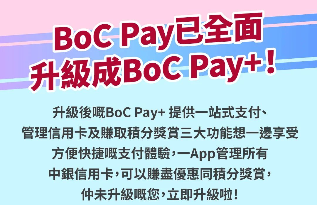 4. 如客戶使用BoC Pay+ 流動應用程式即表示閣下同意中銀香港於BoC Pay+ 不時所載之免責聲明及政策,詳情請流覽目錄>設定>關於>相關服務條款及細則>中銀香港BoC Pay+ 之條款及細則。