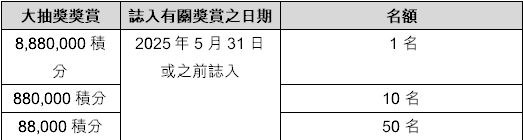 7. 每位合資格客戶於整個推廣期內最多可獲10,000分。
