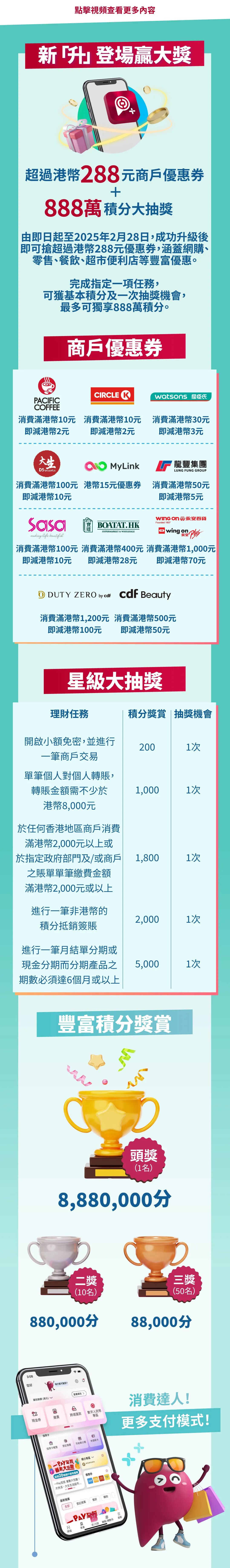 新升登場贏大獎 – 超過HK$288商戶優惠券一般條款及細則:
