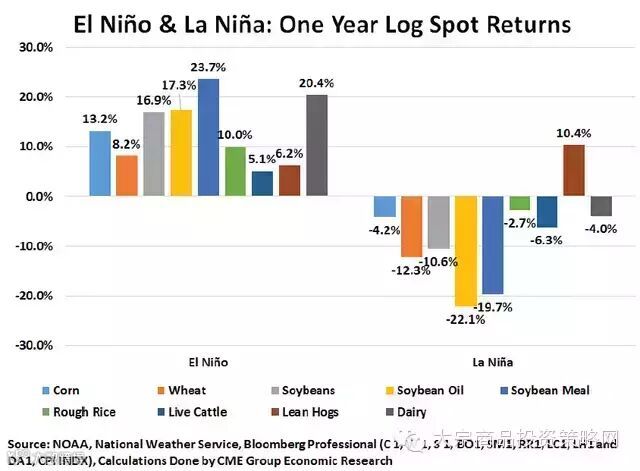 他发现虽然每次厄尔尼诺都有各自的特点,但总的来说,厄尔尼诺对于许多农产品价格都会起到推动作用。