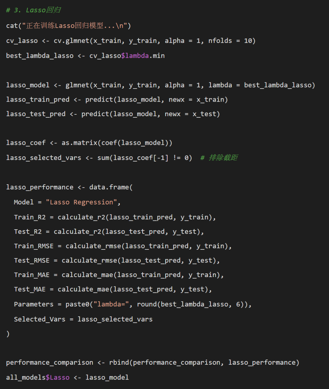 cat("Lasso回归表现良好,特别适合特征选择任务。\n")