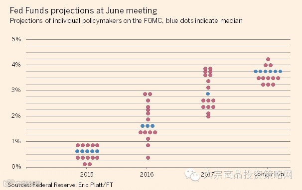 美联储官员们对利率预测的散点图是市场关注的焦点。尽管美国经济在冬季下滑,17名委员中,仍有15人预计年底前要加息。