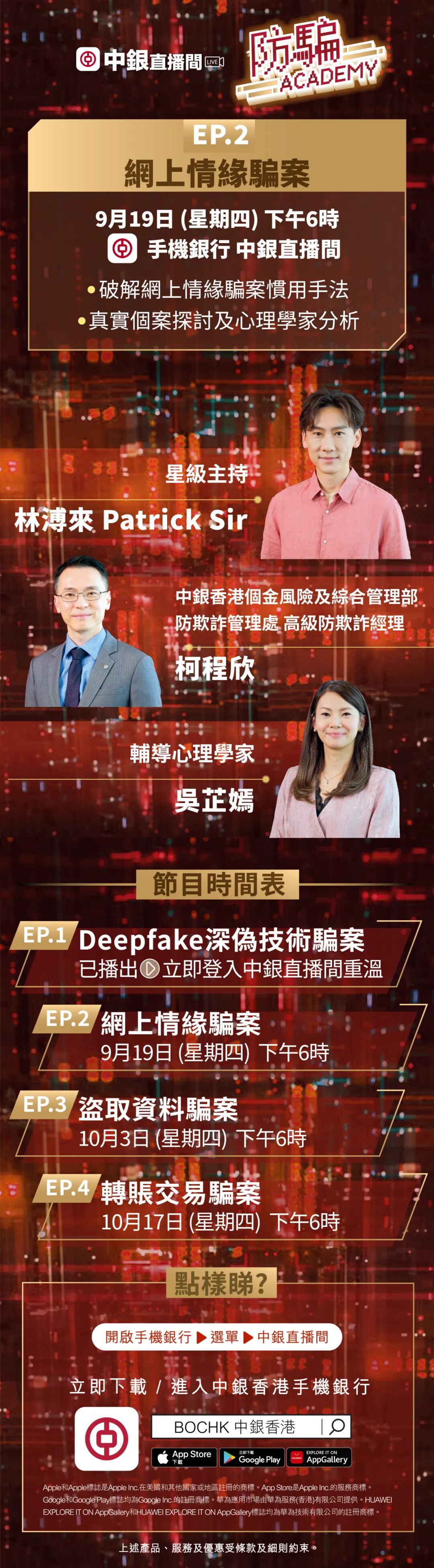 8. 產品及服務受有關條款及細則約束,詳情請參閱相關宣傳品或向中銀香港職員查詢。