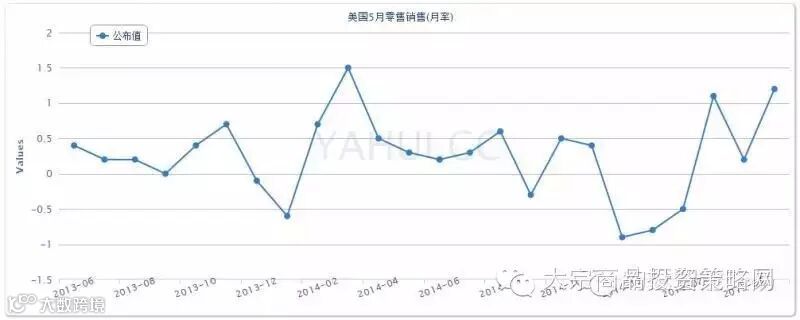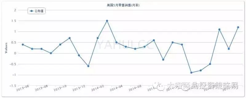 上月该数据增长出现大幅萎缩一度成为美元大跌的主因,该数据4月增长仅为0.2%;美国5月核心零售销售月率1%,预期0.7%,前值0.1%。隔夜数据发布后美元重新获得向上反弹的动力。