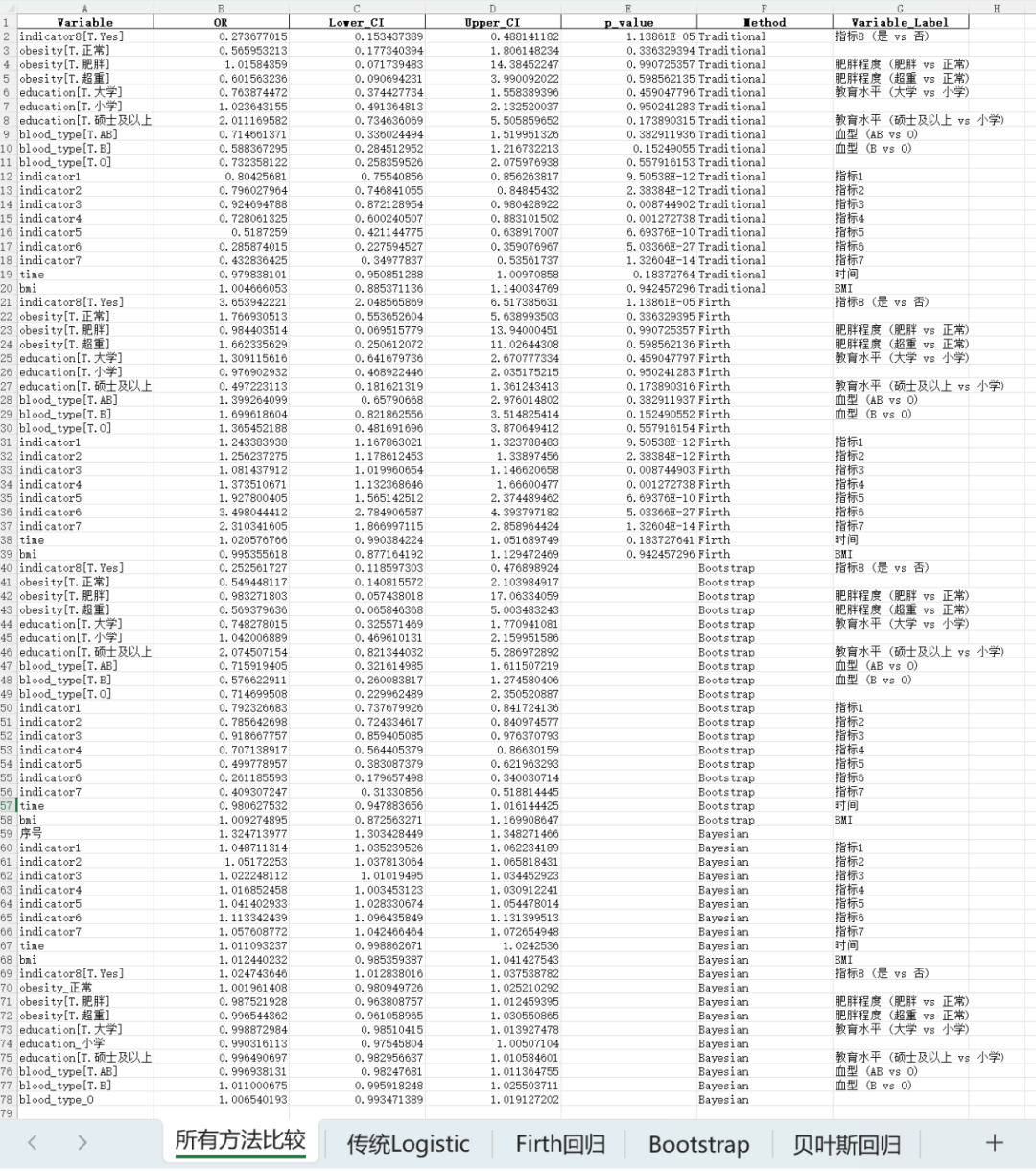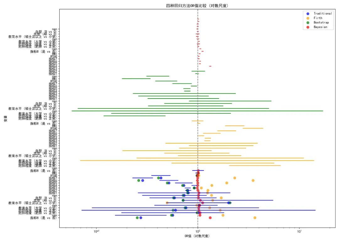 针对传统Logistic回归在小样本或罕见事件中的不足,Firth回归通过引入惩罚项来减少估计偏差,提供更稳定的结果。