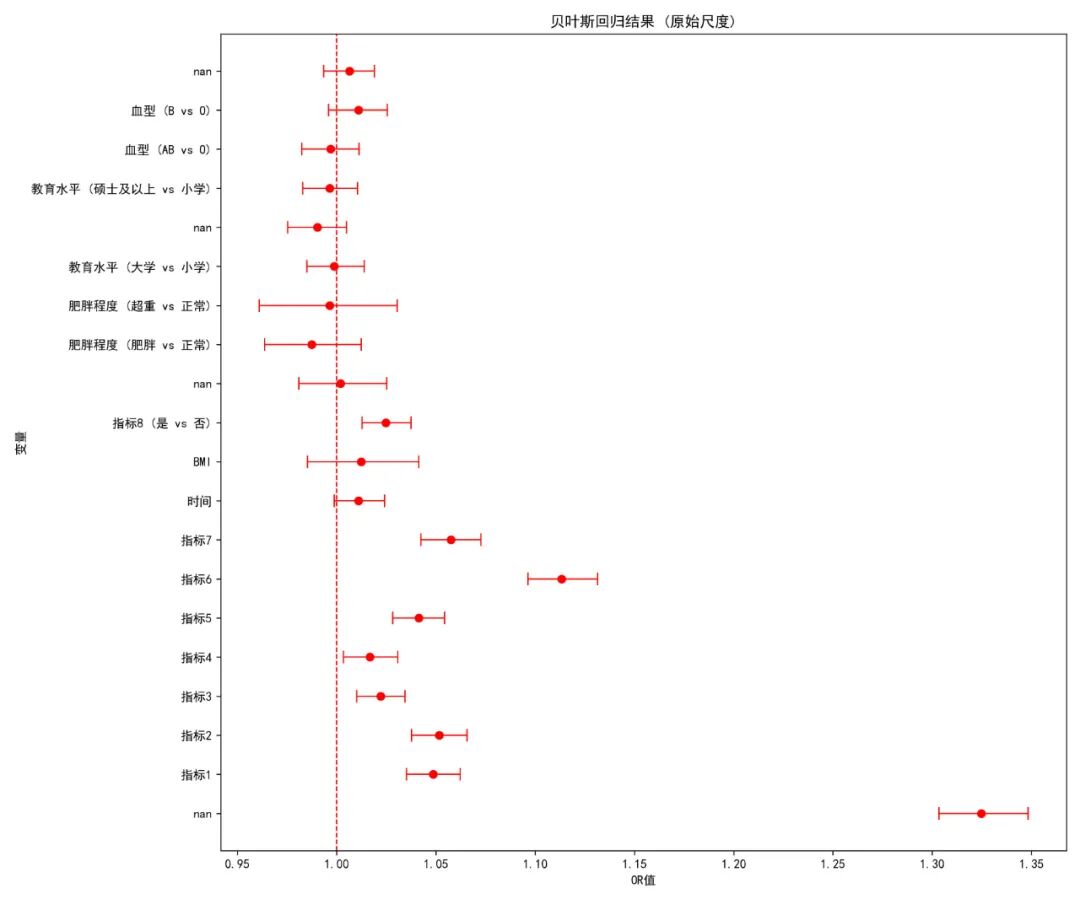 bayes_plot_original = create_forest_plot_original(bayes_data, "贝叶斯回归结果", "red")