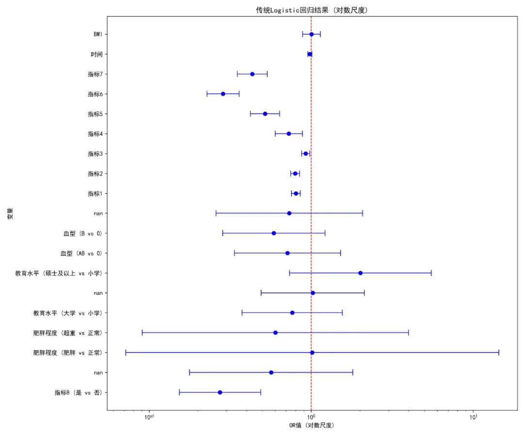 logistic_plot_log.savefig(os.path.join(results_dir, "传统Logistic回归森林图_对数尺度.jpg"), dpi=300)