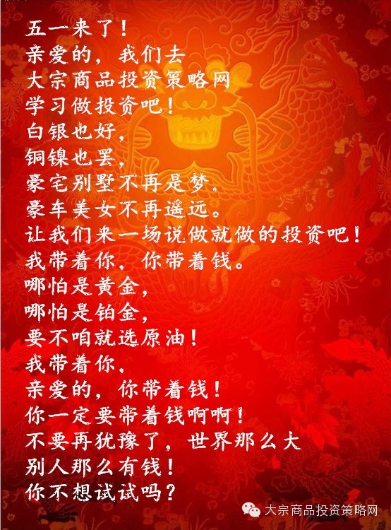 导读:五一大宗商品投资策略网祝贺大家:五一节日快乐!