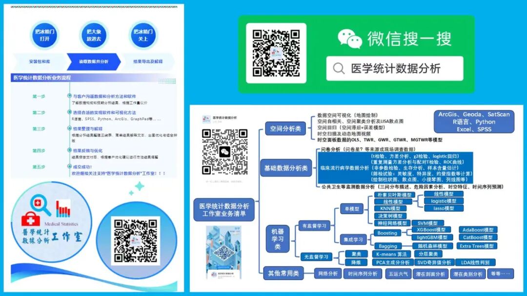 医学统计数据分析分享交流SPSS、R语言、Python、ArcGis、Geoda、GraphPad、数据分析图表制作等心得。承接数据分析,论文返修,医学统计,机器学习,生存分析,空间分析,问卷分析业务。若有投稿和数据分析代做需求,可以直接联系我,谢谢!