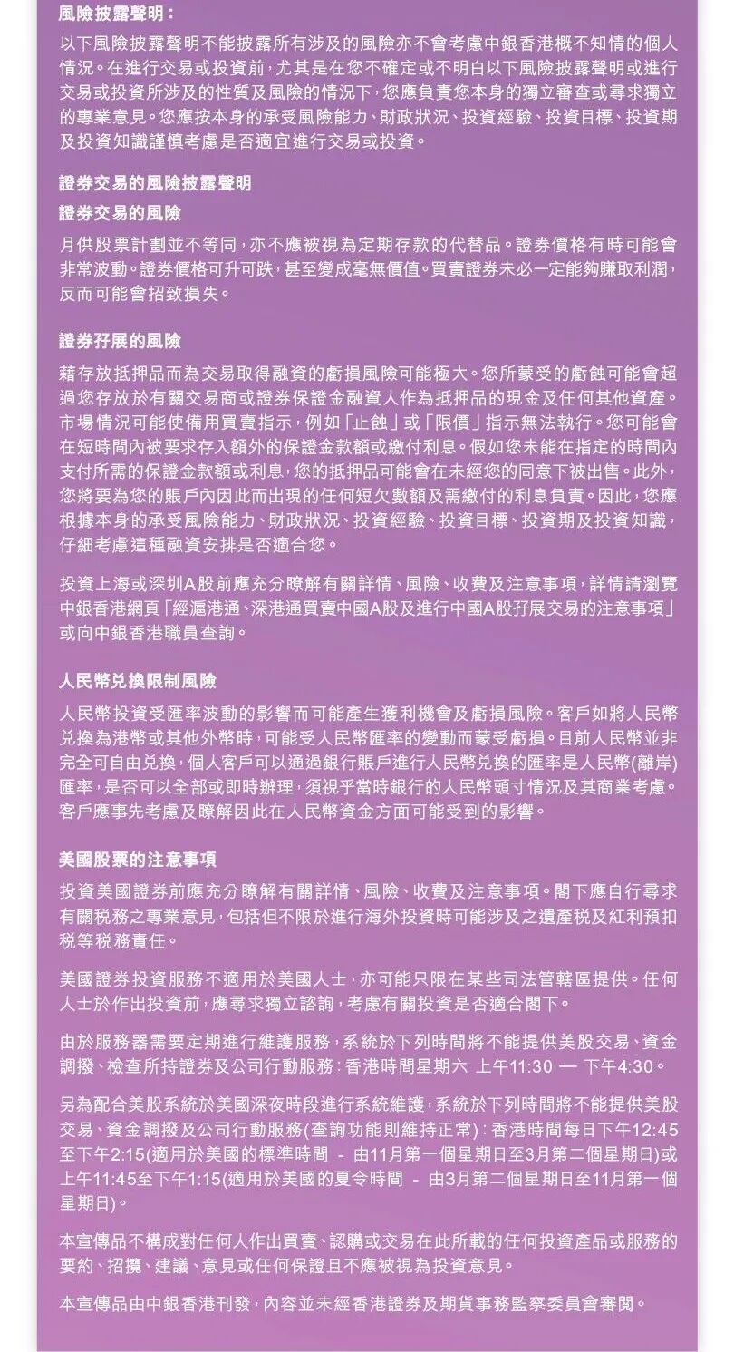 當您使用中銀香港的碎股交易服務,即表示您同意本重要聲明的條款。