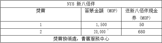 6.以上獎賞不適用於蘋果產品; 新八佰伴貴賓會員於推廣期內在所有參與分店( 即新八佰伴、NY8 新八佰伴、兒童世界 (星皓廣場店)及 New Yaohan Beauty) 每月可換領任何獎賞最多共 5 次。