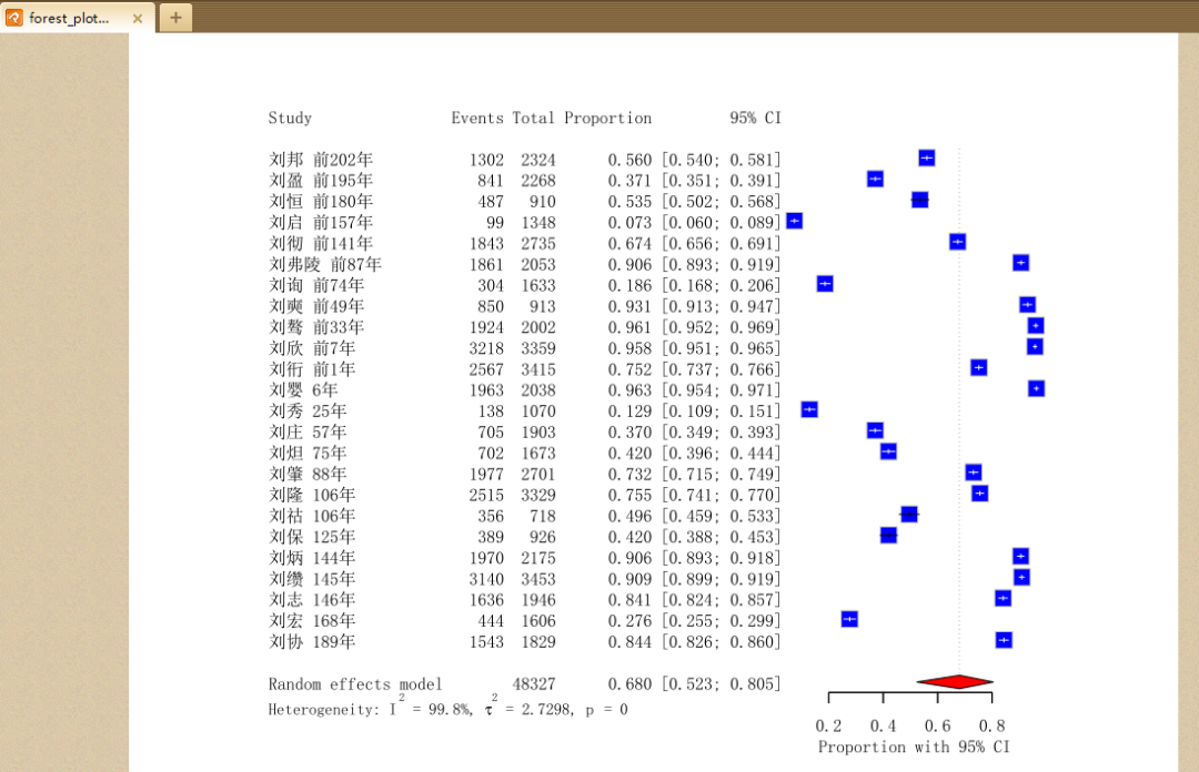 leftlabs = c("Study", "Events", "Total", "Proportion", "95% CI"),