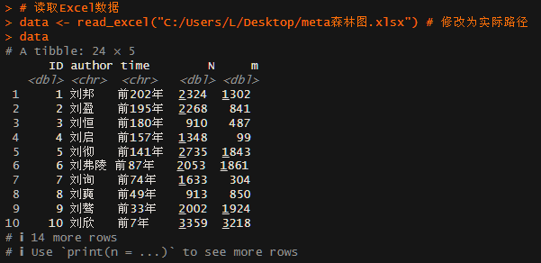 data <- read_excel("C:/Users/L/Desktop/meta森林图.xlsx") # 修改为实际路径