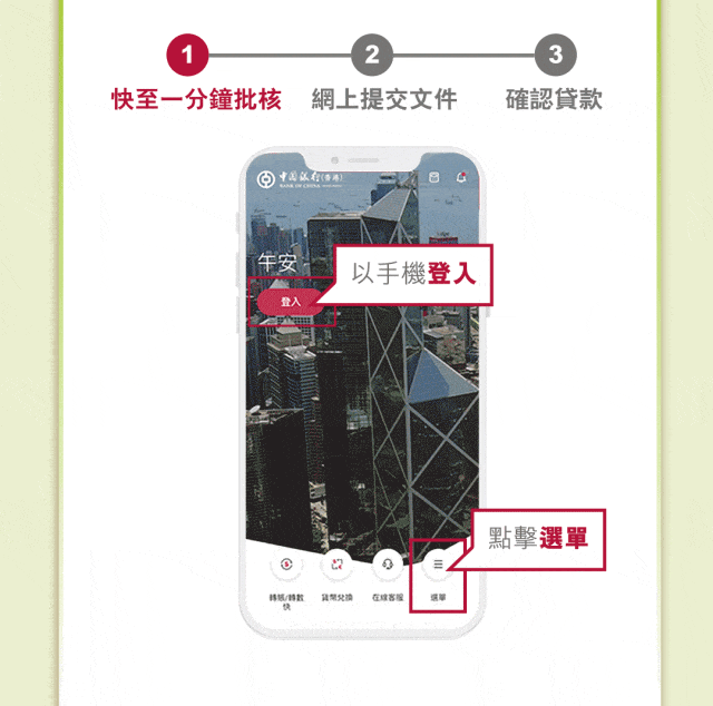 • 瀏覽人士使用中銀香港流動應用程式及/或手機/網上銀行即表示同意中銀香港於流動應用程式及/或手機/網上銀行不時所載之免責聲明及政策。