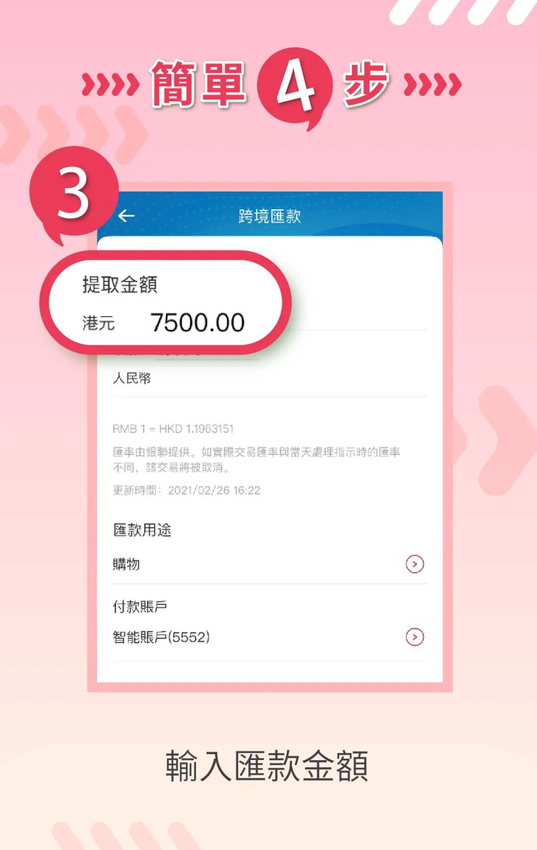 5.跨境匯款交易額上限為智能賬戶所規定的交易限額,即每名合資格客戶每日HK$10,000。