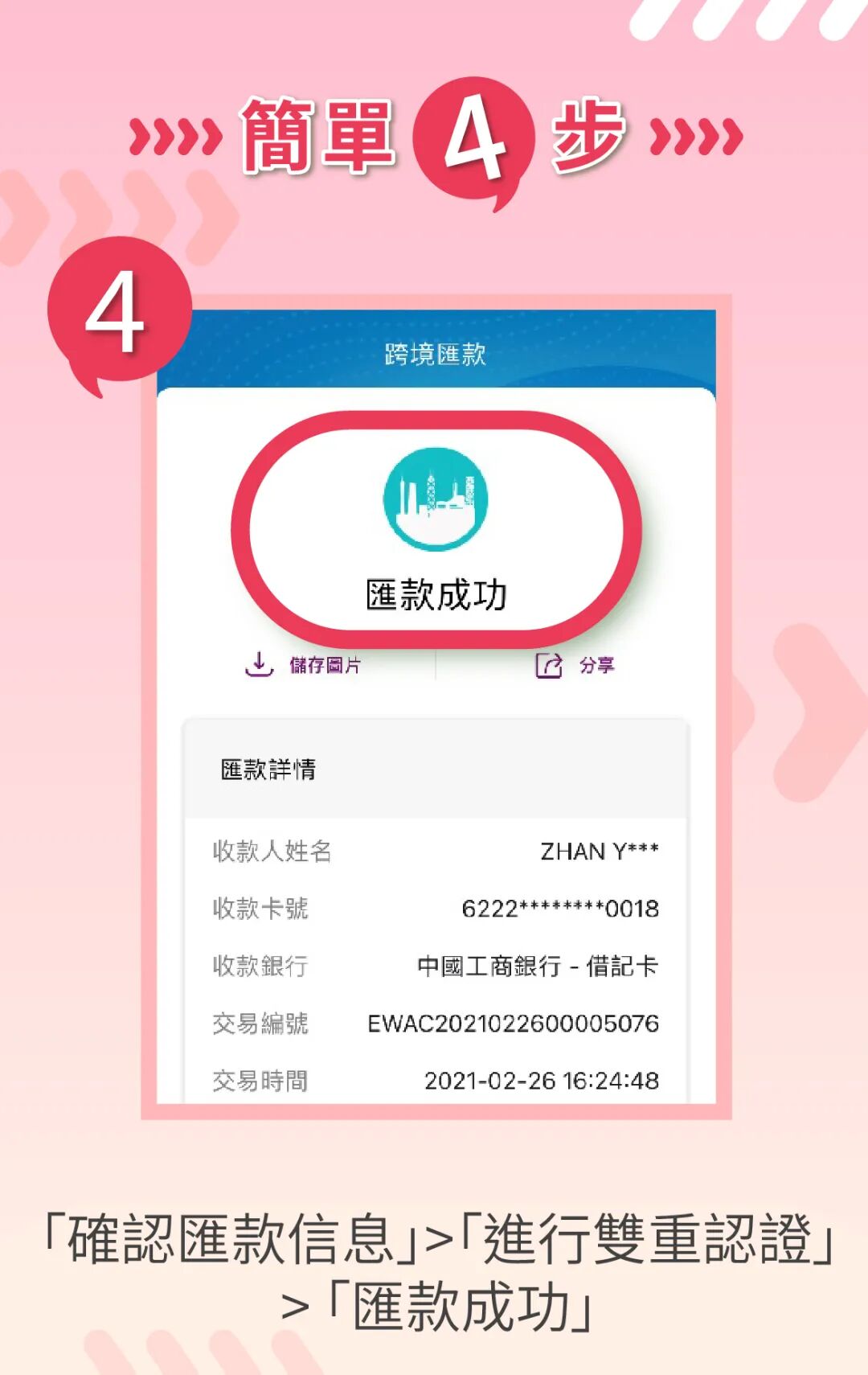 3.合資格客戶於推廣期内透過BoC Pay進行每筆HK$7,500或以上的跨境匯款交易(下稱「合資格交易」),可獲得全數手續費回贈(下稱「回贈」),筆數不限。
