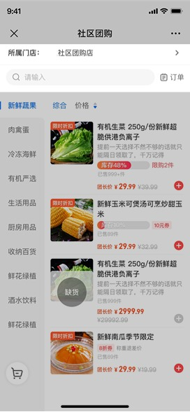 同时,智能货架也新增了自提点切换入口,用户可根据自身位置自由选择不同门店,系统将实时显示该门店下的商品可售状态。