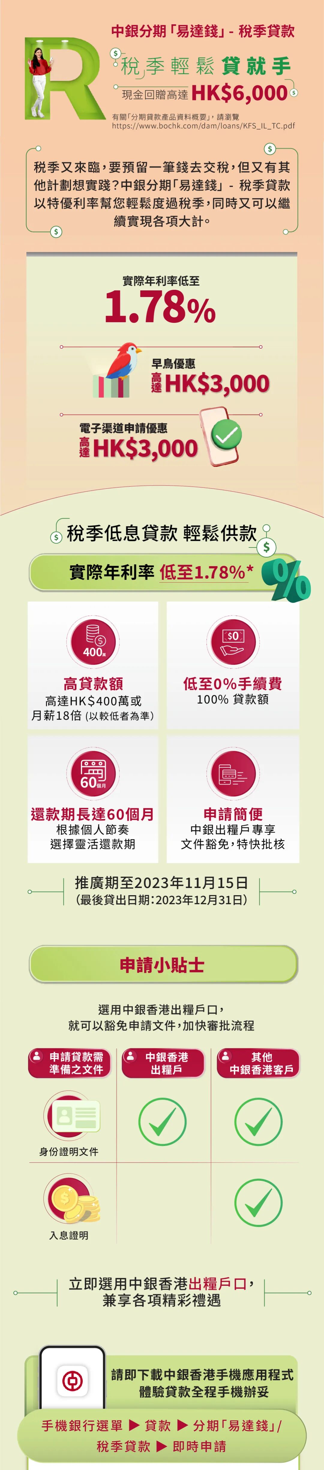 中銀分期「易達錢」| 稅季貸款,幫您輕鬆度過稅季!