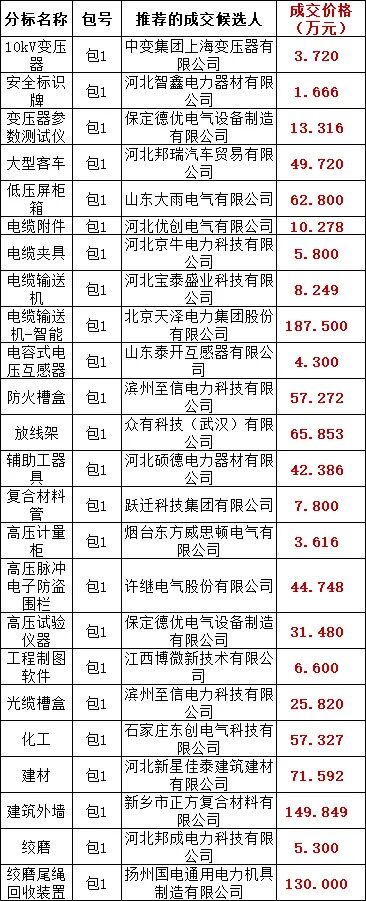 国网河北省电力有限公司子公司(含原集体企业)2025年第七次物资类竞争性谈判采购项目评审工作已经结束,依据《中华人民共和国招标投标法实施条例》、《招标公告和公示信息发布管理办法》对成交候选人公示的规定,现将评审委员会推荐的成交候选人予以公示,公示期1日。应答人或者其他利害关系人若对评审结果有异议的,请在成交候选人公示期间以书面形式(传真、邮箱)提出。