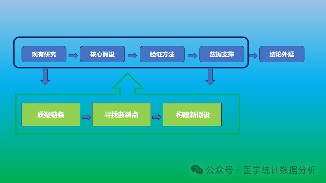 质疑链条 → 寻找断裂点 → 构建新假设
