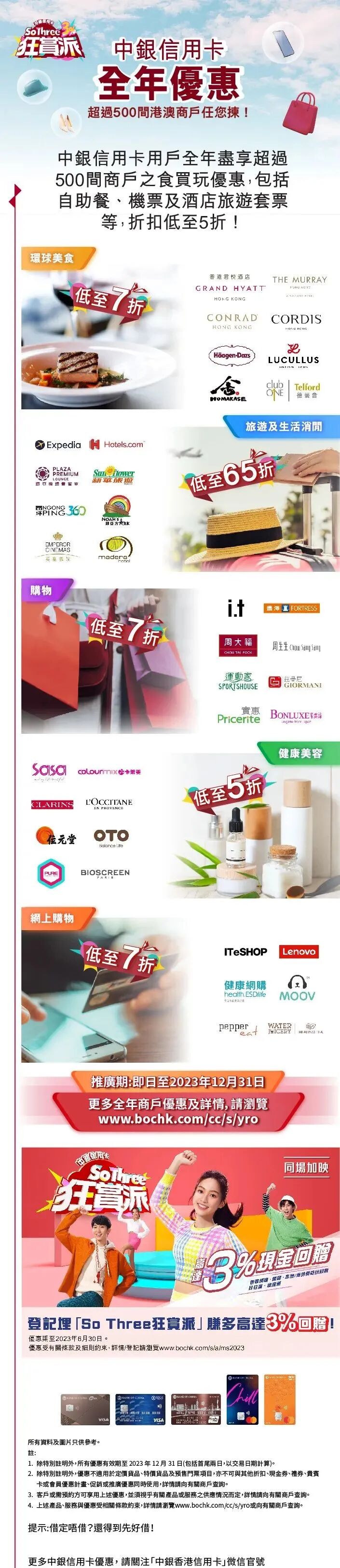 中銀信用卡全年優惠 | 超過500間港澳商戶任您揀