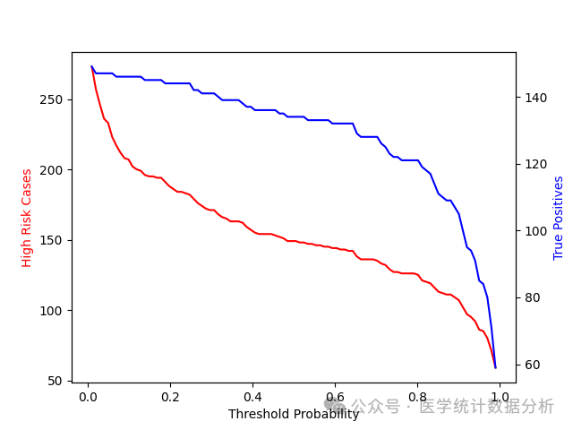 纵轴:高风险人群数量(红色轴)、真阳性数量(蓝色轴)