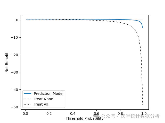 通过净获益(Net Benefit)衡量模型在不同阈值下的临床决策价值