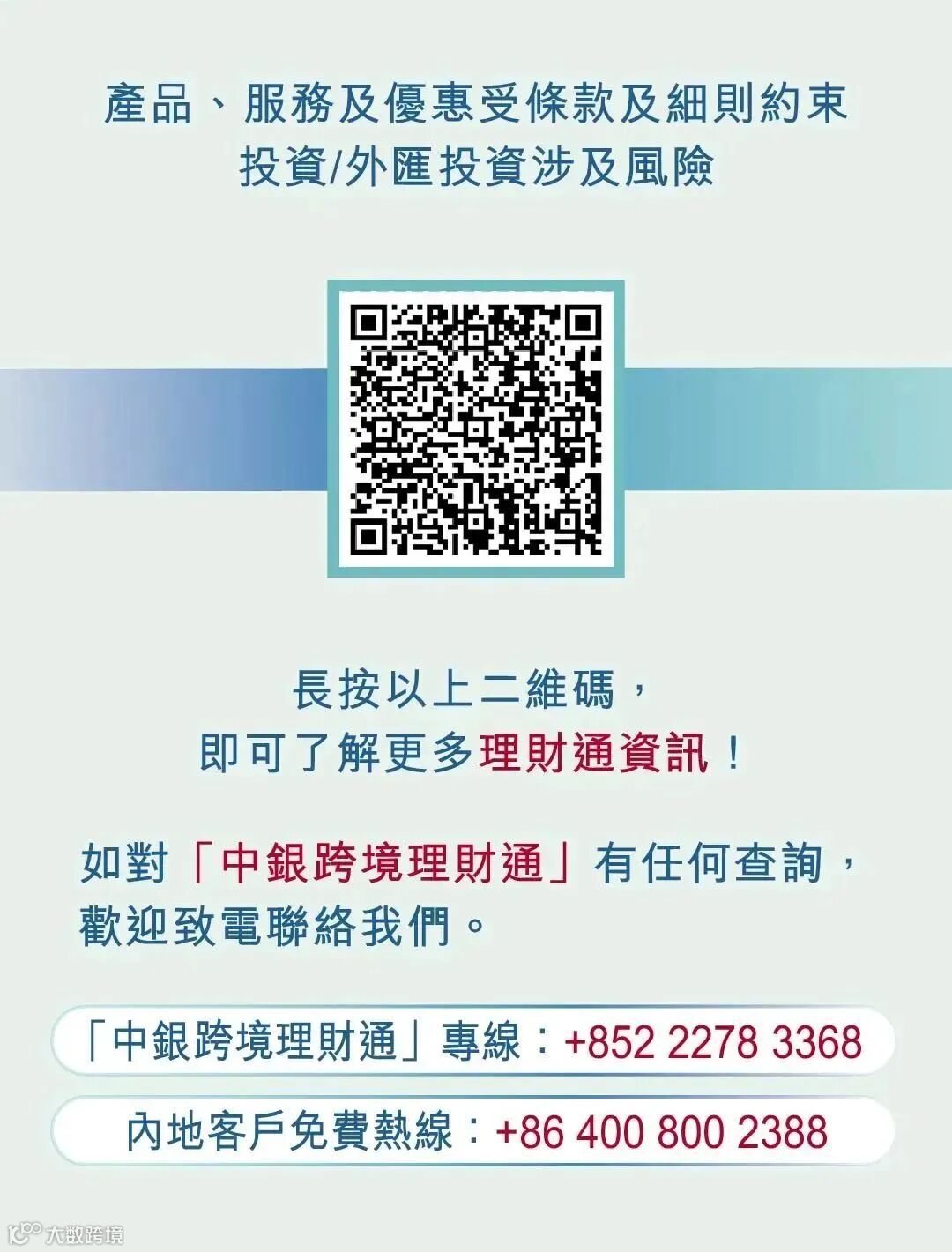 本宣傳品不構成對任何人作出買賣、認購或交易在此所載的任何投資產品或服務的要約、招攬、建議、意見或任何保證且不應被視為投資意見,亦不構成中銀香港向香港以外公眾積極推廣「跨境理財通」。投資涉及風險。