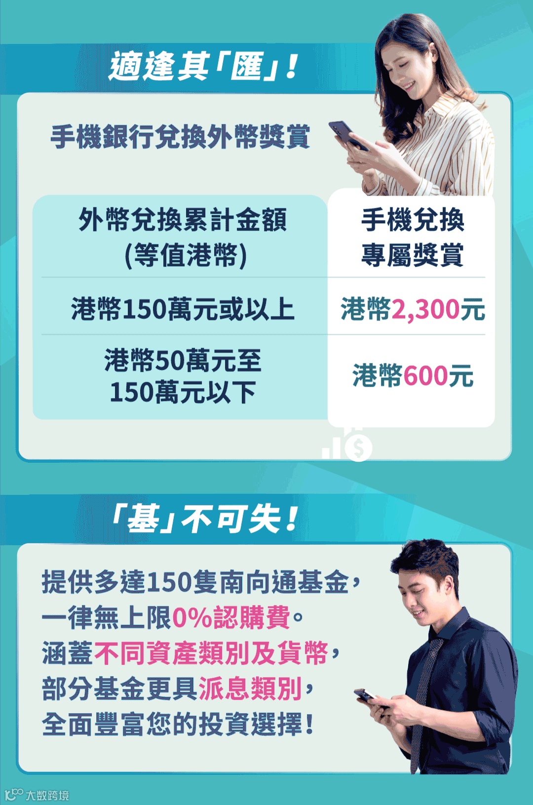 外幣投資受匯率波動而產生獲利及虧損風險。客戶如將外幣兌換為港幣或其他外幣時,可能受外幣匯率變動而蒙受虧損。