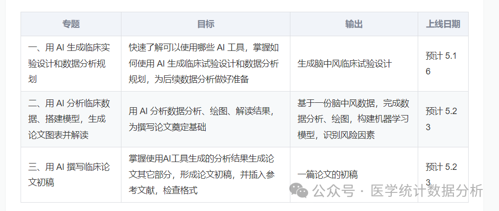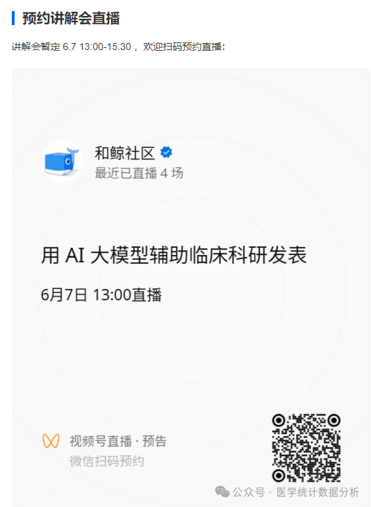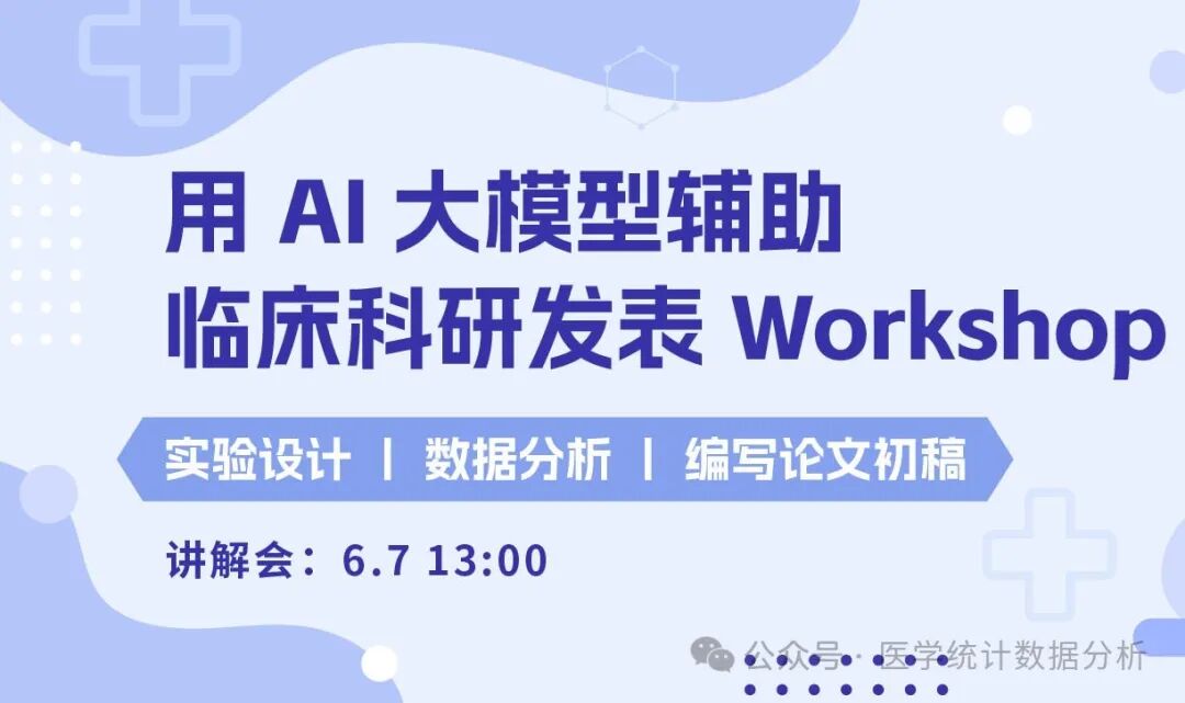 【教案本周开始更新】用 AI 大模型辅助临床科研发表 workshop | 3 个专题 | 讲解会 6.7