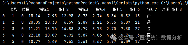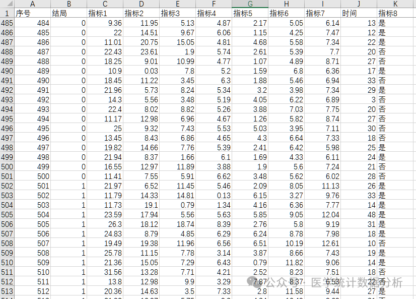 nndata.columns = ['序号','结局','指标1', '指标2', '指标3','指标4','指标5','指标6','指标7','时间','指标8']