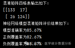 print("混淆矩阵四格表输出如下:")