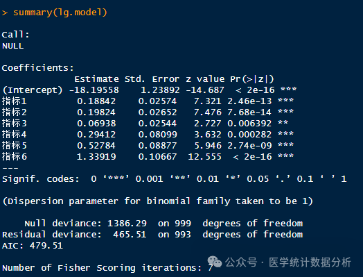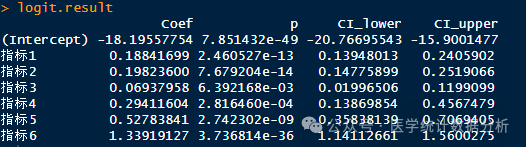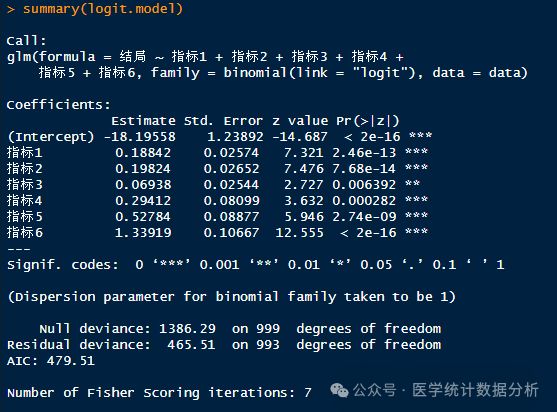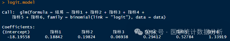 logit.model <- glm(结局 ~ 指标1+指标2+指标3+指标4+指标5+指标6,