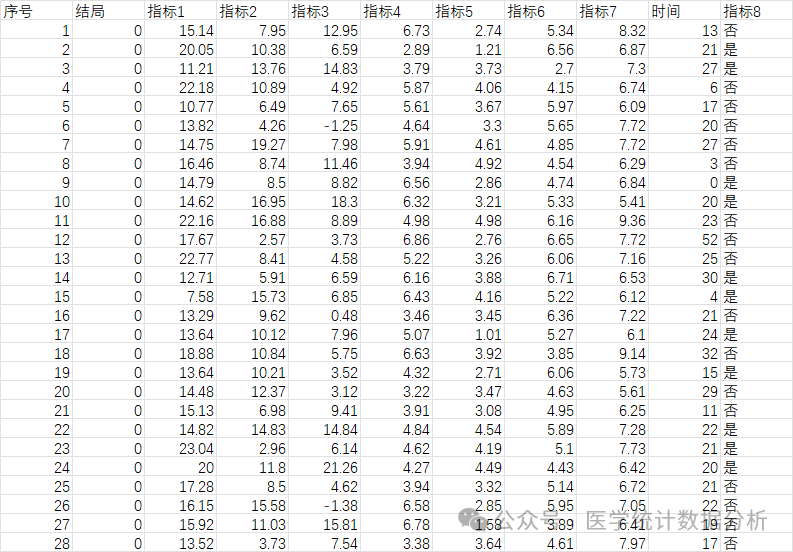 今天我们仍以熟悉的“示例数据”集来演示一下三种常用的logistic回归模型拟合方法及相关可视化实现,分别为:stats包的glm()函数、rms包的lrm()函数、caret包的train()函数。我们打开示例数据。