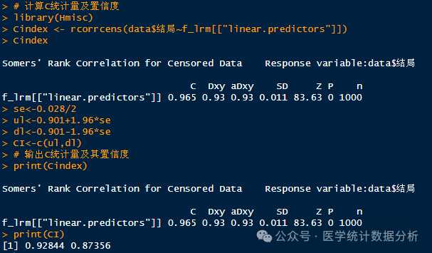 # 输出C统计量及其置信度