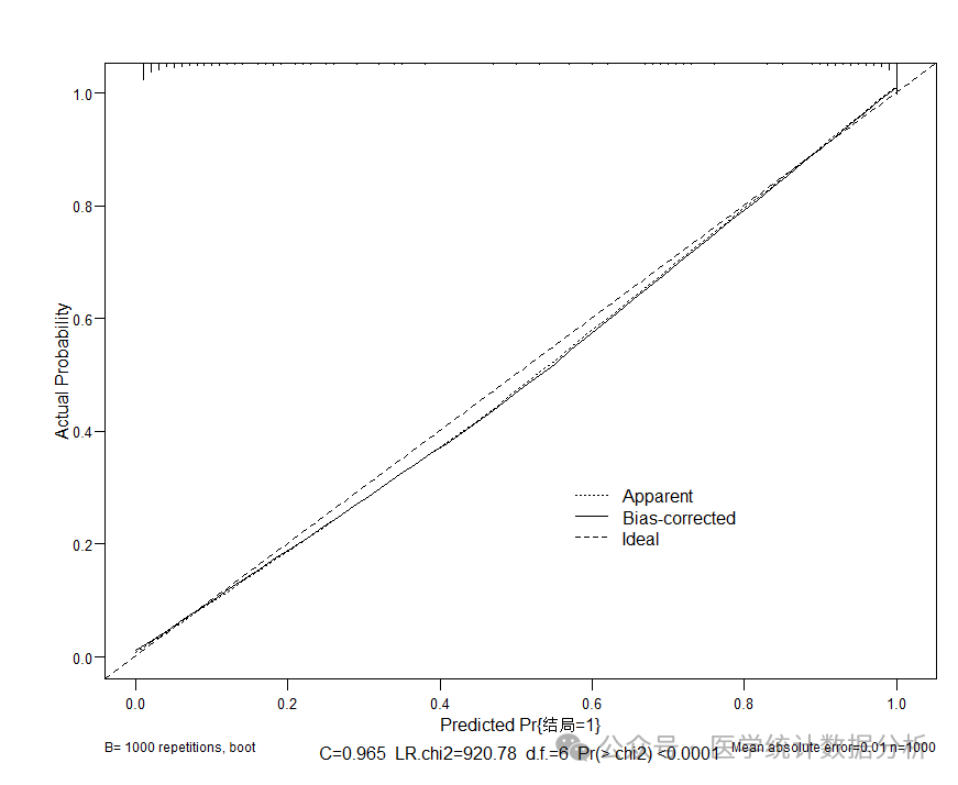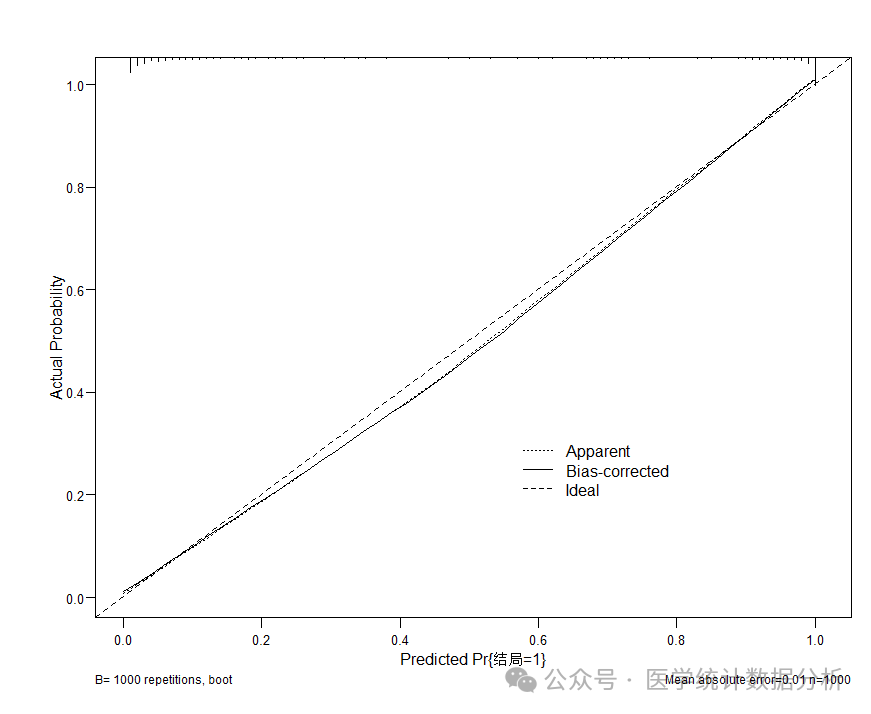 cal1<-calibrate(f_lrm,method="boot", B=1000)