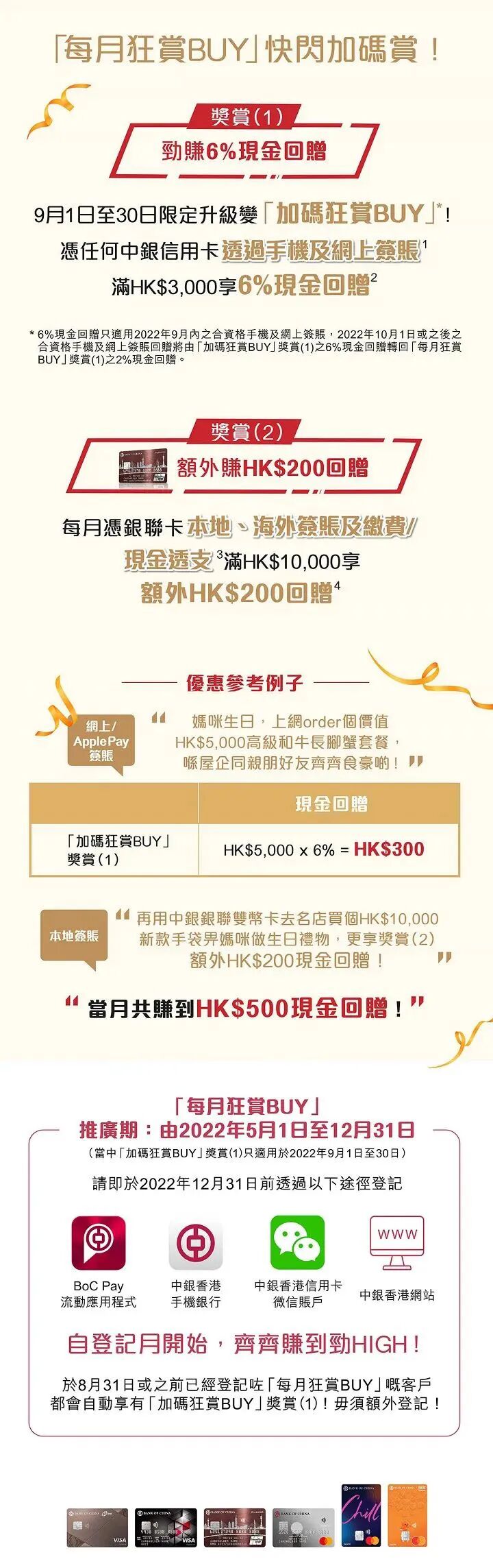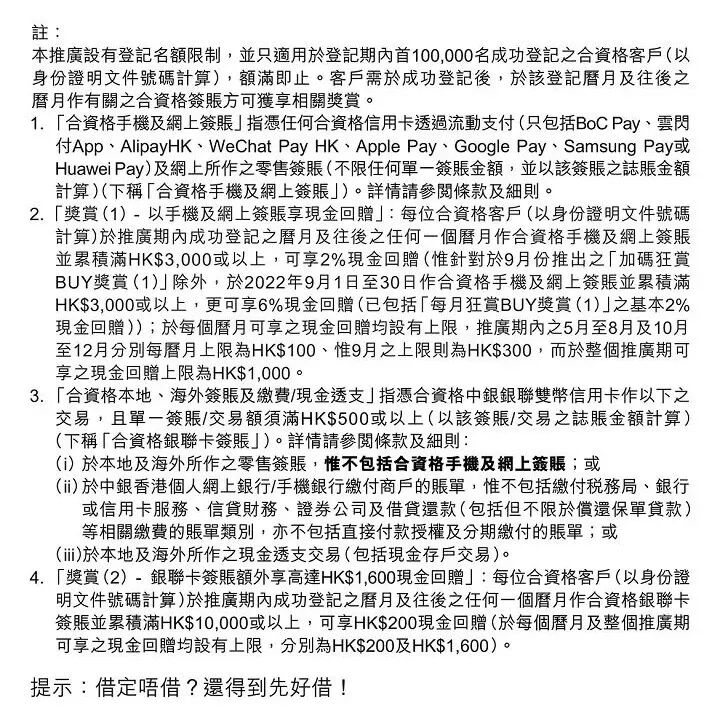 9月限定丨中銀信用卡「加碼狂賞BUY」!勁賺6%回贈!