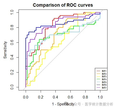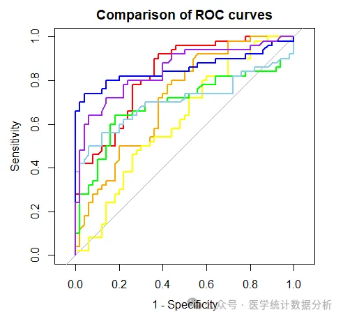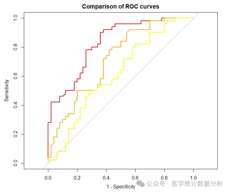 main="Comparison of ROC curves", # 添加标题