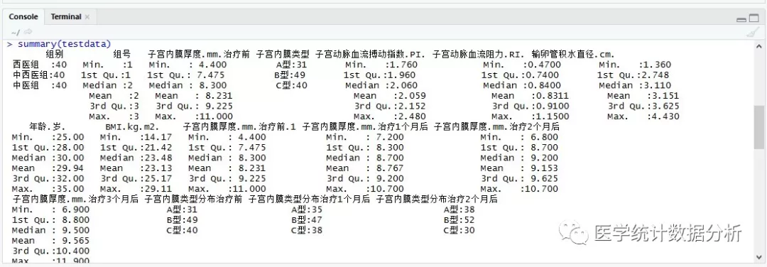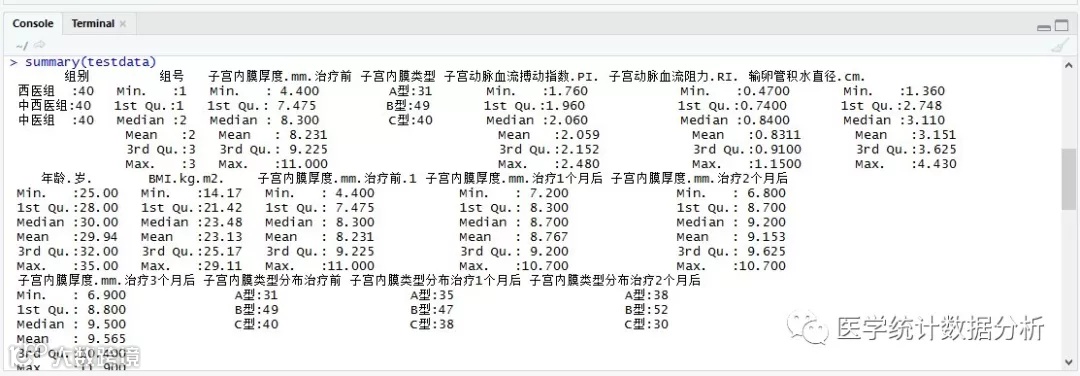 使用summary()语句,对导入的数据大致分布做一下基本了解: