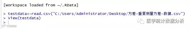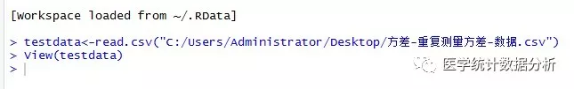我们先把需要分析的Excel表格另存为.csv格式,使用<-read.csv("")语句读取待分析的表格。