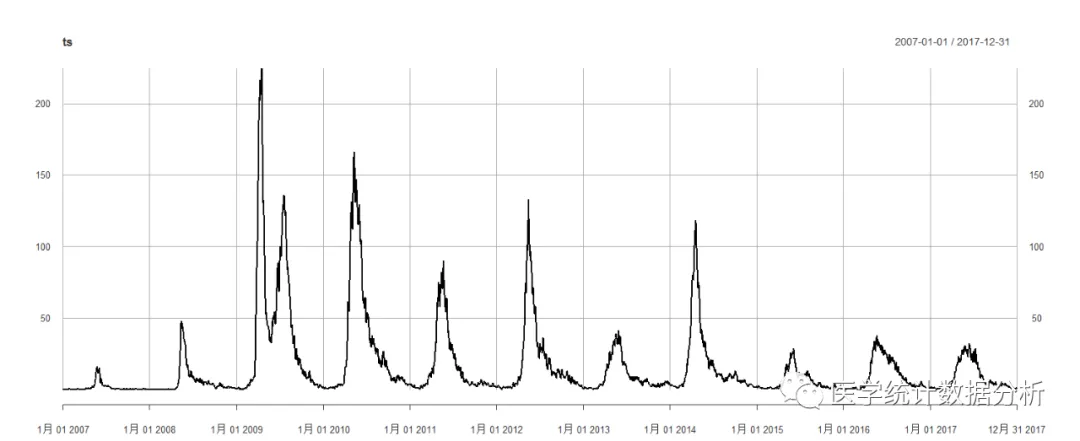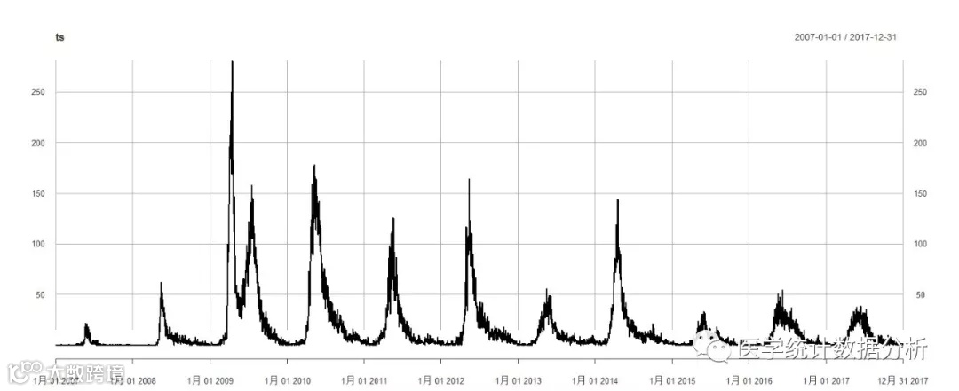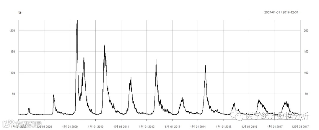 ts<- xts(data3$分析数据, as.Date(data3$日期, format='%Y/%m/%d'))