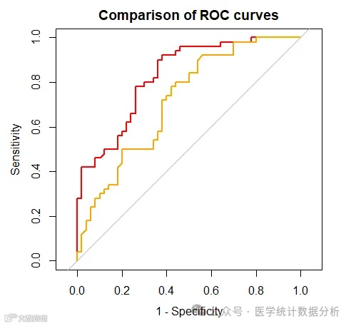 main="Comparison of two ROC curves", # 添加标题