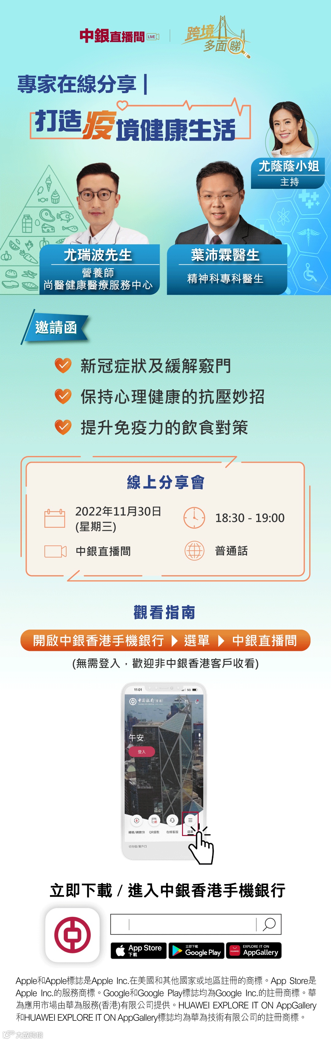 17.節目之主持及嘉賓所作之言論純粹個人意見,並不代表中銀香港的立場。本節目及當中所展示的簡報所提供的資料及/或意見並不代表中銀香港的立場。中銀香港對此並不承擔任何責任。